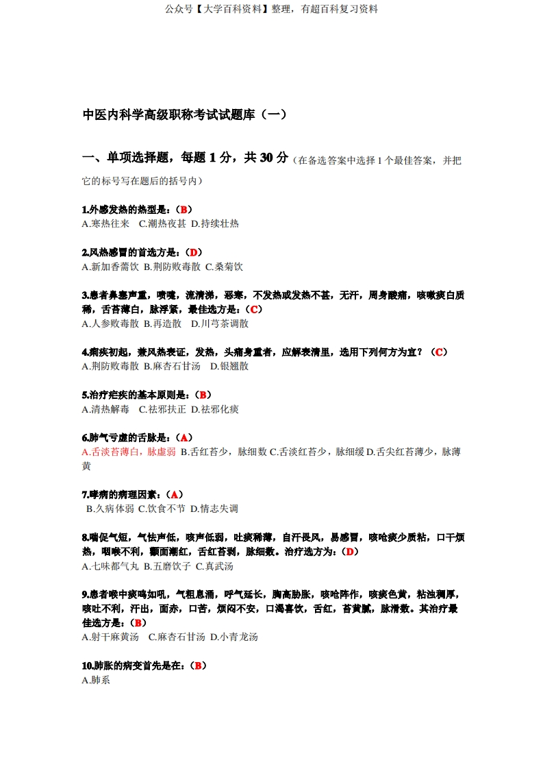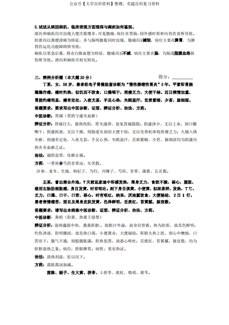 中医内科学题目及答案-学习资源网 - 分享优质学习资料