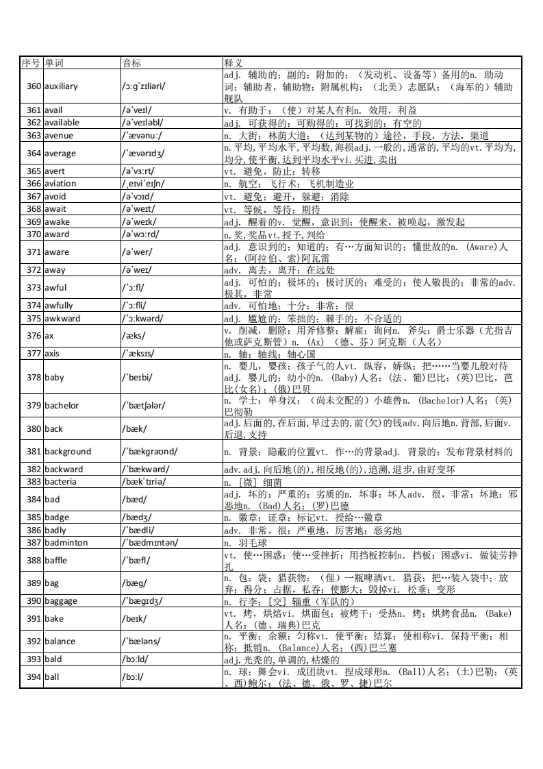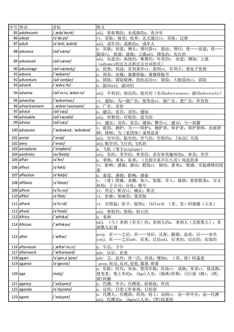 大学英语六级词汇完整带音标-可打印-可编辑-正序版