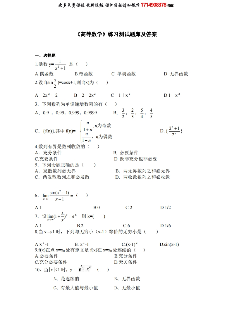 12_高等数学练习题库及答案【】猴哥20天前发布关注私信1.54MB19页021812_高等数学练习题库及答案【】此内容为免费资源,请登录后查看¥0 登录查看免费资源 第1页 / 共19页 该文档为免费文档,您可直接下载完整版进行阅读 © 版权声明文章版权归作者所有,未经允许请勿转载。THE END教材课件 喜欢就支持一下吧点赞8赞赏 分享QQ空间微博QQ好友海报分享复制链接收藏