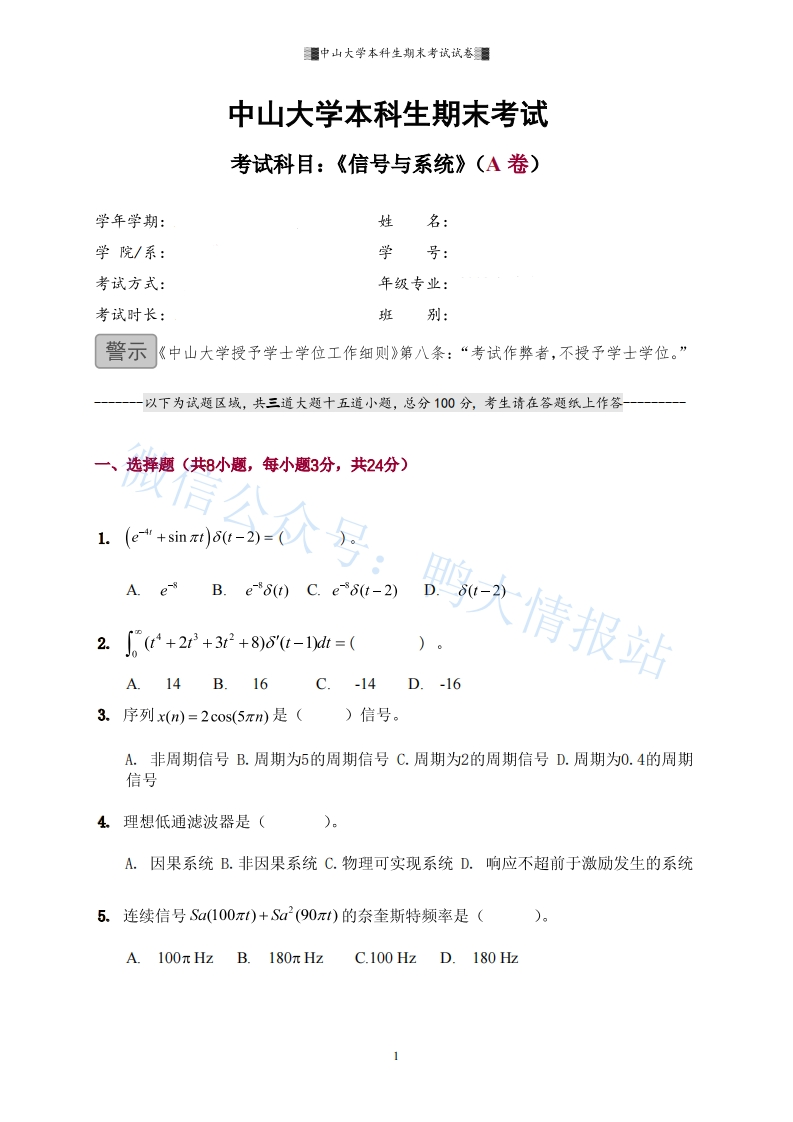 2020年中山大学《信号与系统》期末试卷A卷猴哥17天前发布关注私信0.89MB4页031102020年中山大学《信号与系统》期末试卷A卷此内容为免费资源,请登录后查看¥0 登录查看免费资源 第1页 / 共4页 第2页 / 共4页 第3页 / 共4页 该文档为免费文档,您可直接下载完整版进行阅读 © 版权声明文章版权归作者所有,未经允许请勿转载。THE END教材课件 喜欢就支持一下吧点赞10赞赏 分享QQ空间微博QQ好友海报分享复制链接收藏