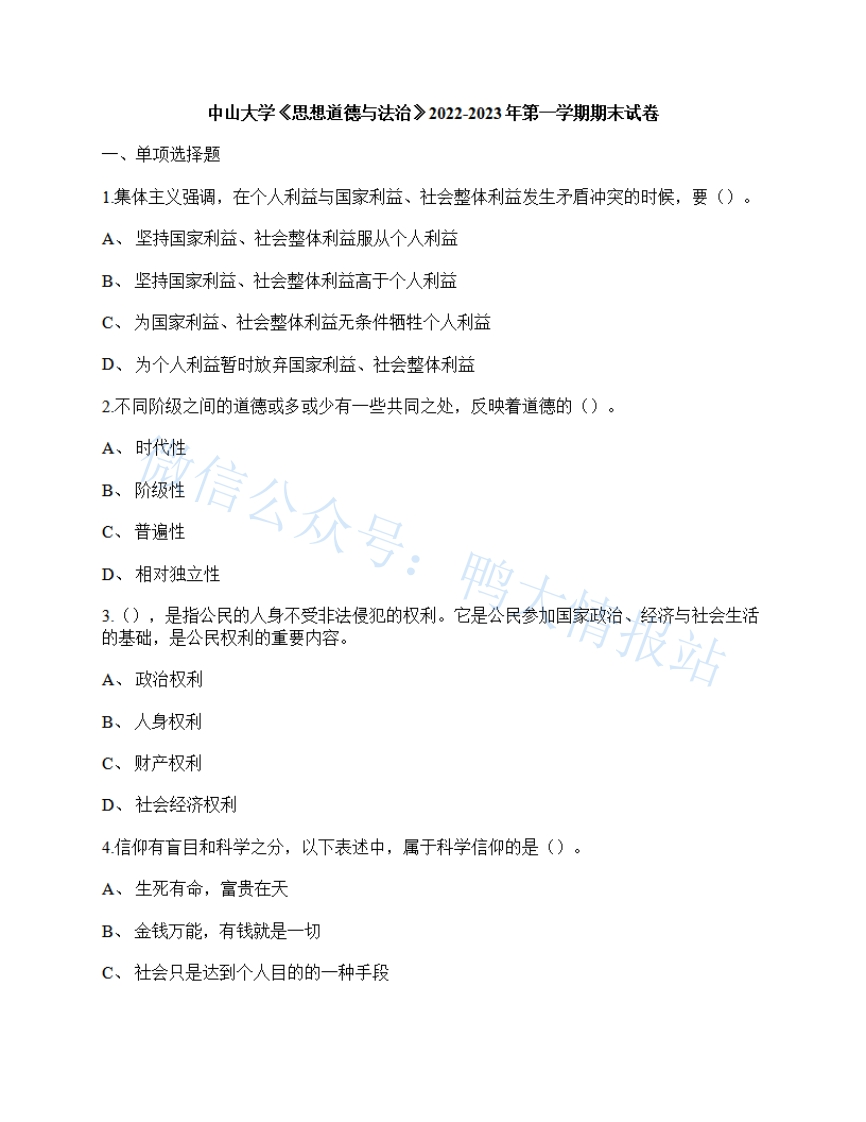 中山大学《思想道德与法治》2022-2023年期末试卷猴哥17天前发布关注私信0.43MB13页0395中山大学《思想道德与法治》2022-2023年期末试卷此内容为免费资源,请登录后查看¥0 登录查看免费资源 第1页 / 共13页 第2页 / 共13页 第3页 / 共13页 该文档为免费文档,您可直接下载完整版进行阅读 © 版权声明文章版权归作者所有,未经允许请勿转载。THE END教材课件 喜欢就支持一下吧点赞5赞赏 分享QQ空间微博QQ好友海报分享复制链接收藏