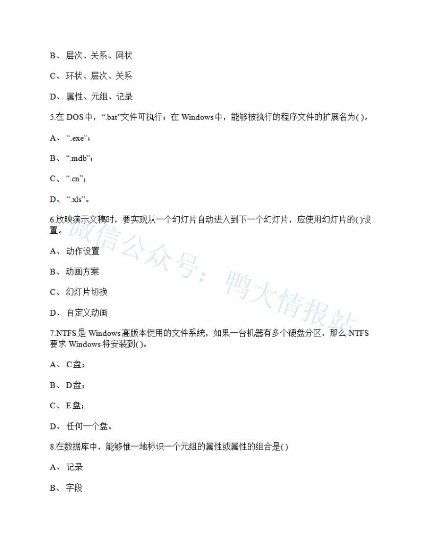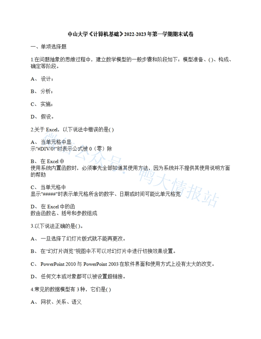 中山大学《计算机基础》2022-2023年期末试卷猴哥17天前发布关注私信0.37MB11页03014中山大学《计算机基础》2022-2023年期末试卷此内容为免费资源,请登录后查看¥0 登录查看免费资源 第1页 / 共11页 第2页 / 共11页 第3页 / 共11页 该文档为免费文档,您可直接下载完整版进行阅读 © 版权声明文章版权归作者所有,未经允许请勿转载。THE END教材课件 喜欢就支持一下吧点赞14赞赏 分享QQ空间微博QQ好友海报分享复制链接收藏
