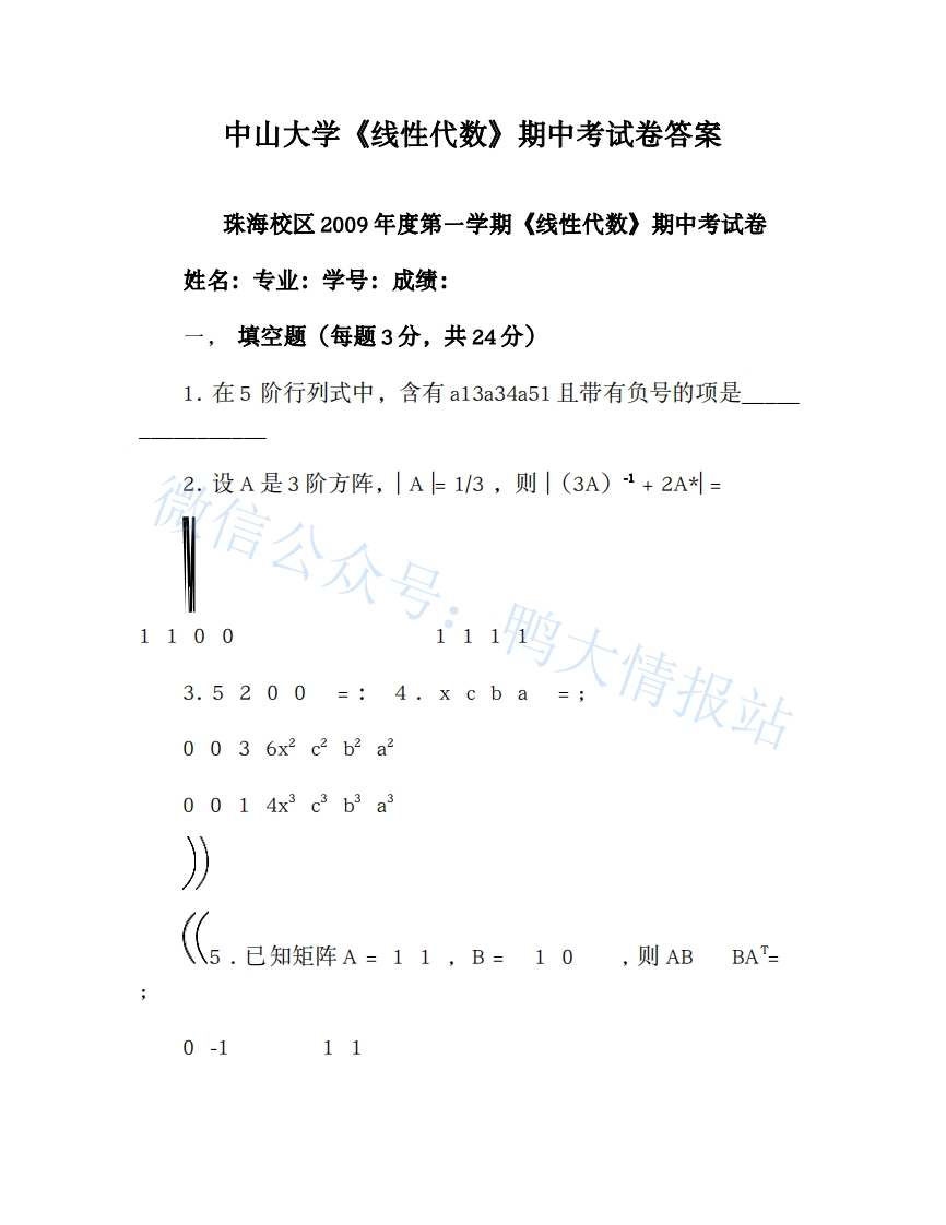 中山大学《线性代数》2009-2010学年期末试卷猴哥17天前发布关注私信0.31MB8页03312中山大学《线性代数》2009-2010学年期末试卷此内容为免费资源,请登录后查看¥0 登录查看免费资源 第1页 / 共8页 第2页 / 共8页 第3页 / 共8页 该文档为免费文档,您可直接下载完整版进行阅读 © 版权声明文章版权归作者所有,未经允许请勿转载。THE END教材课件 喜欢就支持一下吧点赞12赞赏 分享QQ空间微博QQ好友海报分享复制链接收藏