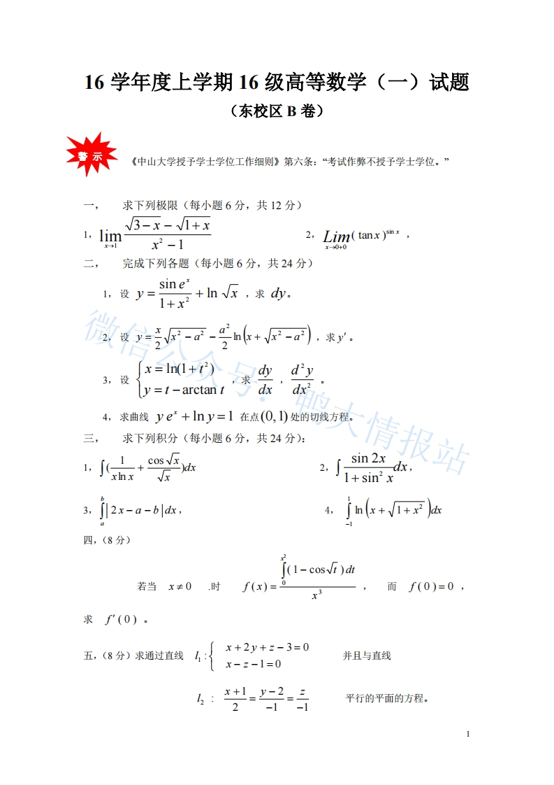 中山大学《高等数学》2016-2017学年期末试卷B卷猴哥17天前发布关注私信0.42MB3页0435中山大学《高等数学》2016-2017学年期末试卷B卷此内容为免费资源,请登录后查看¥0 登录查看免费资源 第1页 / 共3页 第2页 / 共3页 第3页 / 共3页 已完成全部阅读,共3页 © 版权声明文章版权归作者所有,未经允许请勿转载。THE END教材课件 喜欢就支持一下吧点赞5赞赏 分享QQ空间微博QQ好友海报分享复制链接收藏