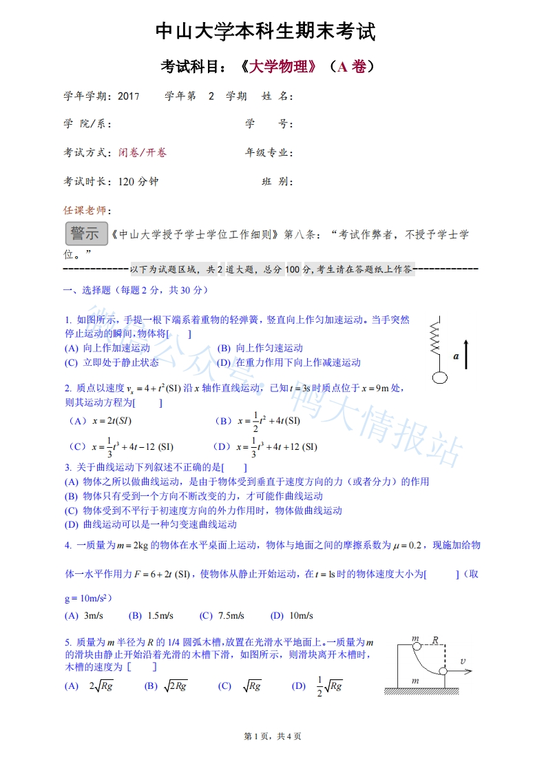 中山大学《大学物理》2017-2018学年期末试卷A猴哥16天前发布关注私信0.66MB5页02510中山大学《大学物理》2017-2018学年期末试卷A此内容为免费资源,请登录后查看¥0 登录查看免费资源 第1页 / 共5页 第2页 / 共5页 第3页 / 共5页 该文档为免费文档,您可直接下载完整版进行阅读 © 版权声明文章版权归作者所有,未经允许请勿转载。THE END教材课件 喜欢就支持一下吧点赞10赞赏 分享QQ空间微博QQ好友海报分享复制链接收藏