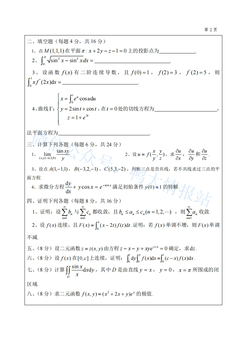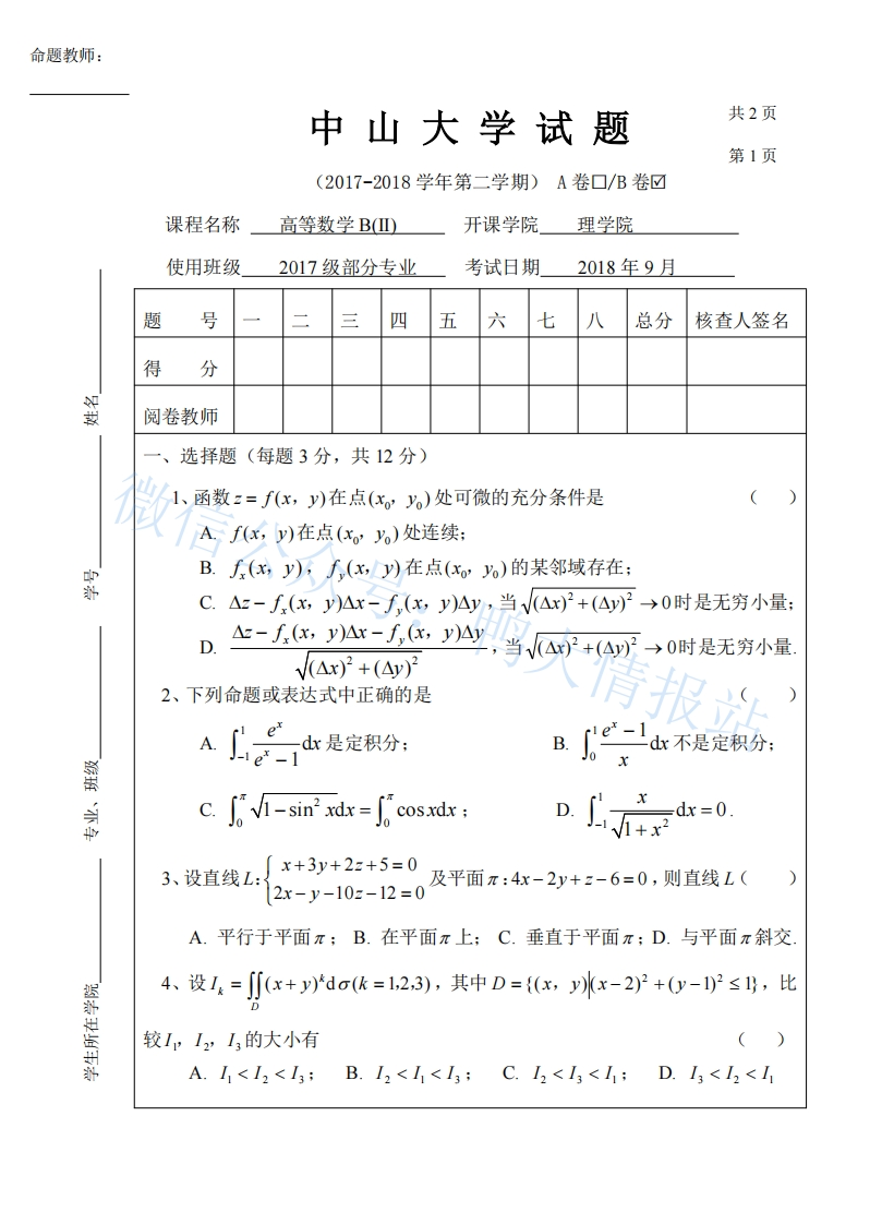 中山大学《高等数学B》2017-2018学年期末试卷B猴哥16天前发布关注私信0.33MB3页0417中山大学《高等数学B》2017-2018学年期末试卷B此内容为免费资源,请登录后查看¥0 登录查看免费资源 第1页 / 共3页 第2页 / 共3页 第3页 / 共3页 已完成全部阅读,共3页 © 版权声明文章版权归作者所有,未经允许请勿转载。THE END教材课件 喜欢就支持一下吧点赞7赞赏 分享QQ空间微博QQ好友海报分享复制链接收藏