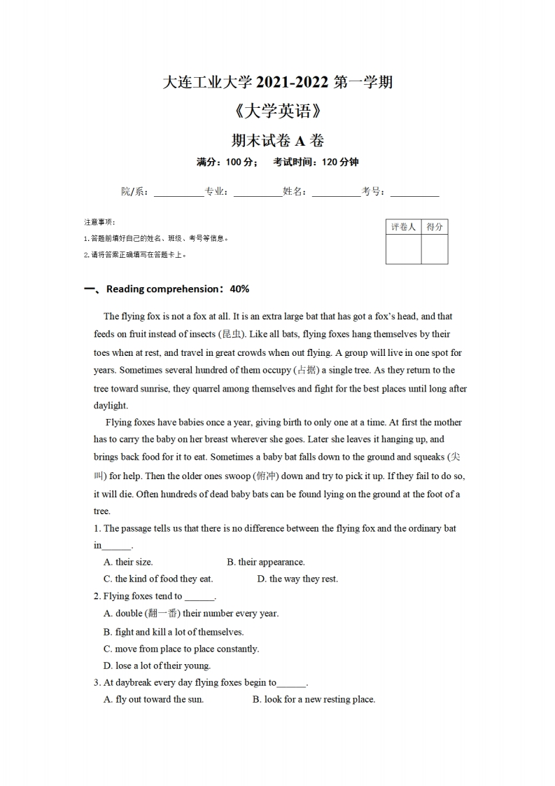 大连工业大学《大学英语》2021-2022期末试卷猴哥16天前发布关注私信0.38MB6页0319大连工业大学《大学英语》2021-2022期末试卷此内容为免费资源,请登录后查看¥0 登录查看免费资源 第1页 / 共6页 第2页 / 共6页 第3页 / 共6页 该文档为免费文档,您可直接下载完整版进行阅读 © 版权声明文章版权归作者所有,未经允许请勿转载。THE END教材课件 喜欢就支持一下吧点赞9赞赏 分享QQ空间微博QQ好友海报分享复制链接收藏