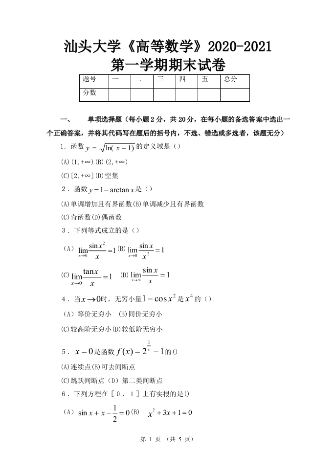 汕头大学《高等数学》2020-2021第一学期期末试卷-4cf24f088a14猴哥16天前发布关注私信0.16MB5页0256汕头大学《高等数学》2020-2021第一学期期末试卷-4cf24f088a14此内容为免费资源,请登录后查看¥0 登录查看免费资源 第1页 / 共5页 第2页 / 共5页 第3页 / 共5页 该文档为免费文档,您可直接下载完整版进行阅读 © 版权声明文章版权归作者所有,未经允许请勿转载。THE END教材课件 喜欢就支持一下吧点赞6赞赏 分享QQ空间微博QQ好友海报分享复制链接收藏