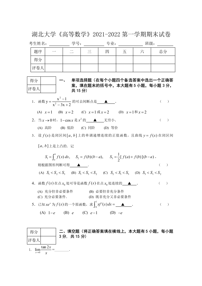 湖北大学《高等数学》2021-2022第一学期期末试卷猴哥17天前发布关注私信0.19MB5页0475湖北大学《高等数学》2021-2022第一学期期末试卷此内容为免费资源,请登录后查看¥0 登录查看免费资源 第1页 / 共5页 第2页 / 共5页 第3页 / 共5页 该文档为免费文档,您可直接下载完整版进行阅读 © 版权声明文章版权归作者所有,未经允许请勿转载。THE END教材课件 喜欢就支持一下吧点赞5赞赏 分享QQ空间微博QQ好友海报分享复制链接收藏