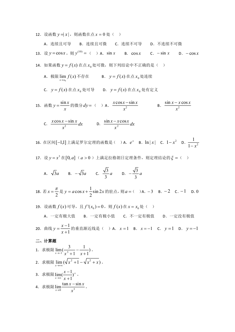 浙江大学《高等数学》2018-2019学年第一学期期末试卷A卷-e287a7d9d060猴哥17天前发布关注私信0.17MB4页04011浙江大学《高等数学》2018-2019学年第一学期期末试卷A卷-e287a7d9d060此内容为免费资源,请登录后查看¥0 登录查看免费资源 第1页 / 共4页 第2页 / 共4页 第3页 / 共4页 该文档为免费文档,您可直接下载完整版进行阅读 © 版权声明文章版权归作者所有,未经允许请勿转载。THE END教材课件 喜欢就支持一下吧点赞11赞赏 分享QQ空间微博QQ好友海报分享复制链接收藏