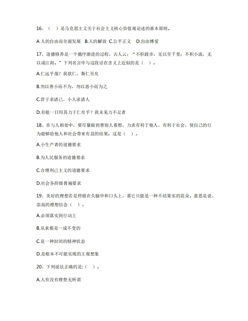鲁迅美术学院《思想道德与法治》2020-2021学年第一学期期末试卷猴哥16天前发布关注私信0.43MB13页0259鲁迅美术学院《思想道德与法治》2020-2021学年第一学期期末试卷此内容为免费资源,请登录后查看¥0 登录查看免费资源 第1页 / 共13页 第2页 / 共13页 第3页 / 共13页 该文档为免费文档,您可直接下载完整版进行阅读 © 版权声明文章版权归作者所有,未经允许请勿转载。THE END《鲁迅美术学院》期中期末历年真题期末试卷 喜欢就支持一下吧点赞9赞赏 分享QQ空间微博QQ好友海报分享复制链接收藏