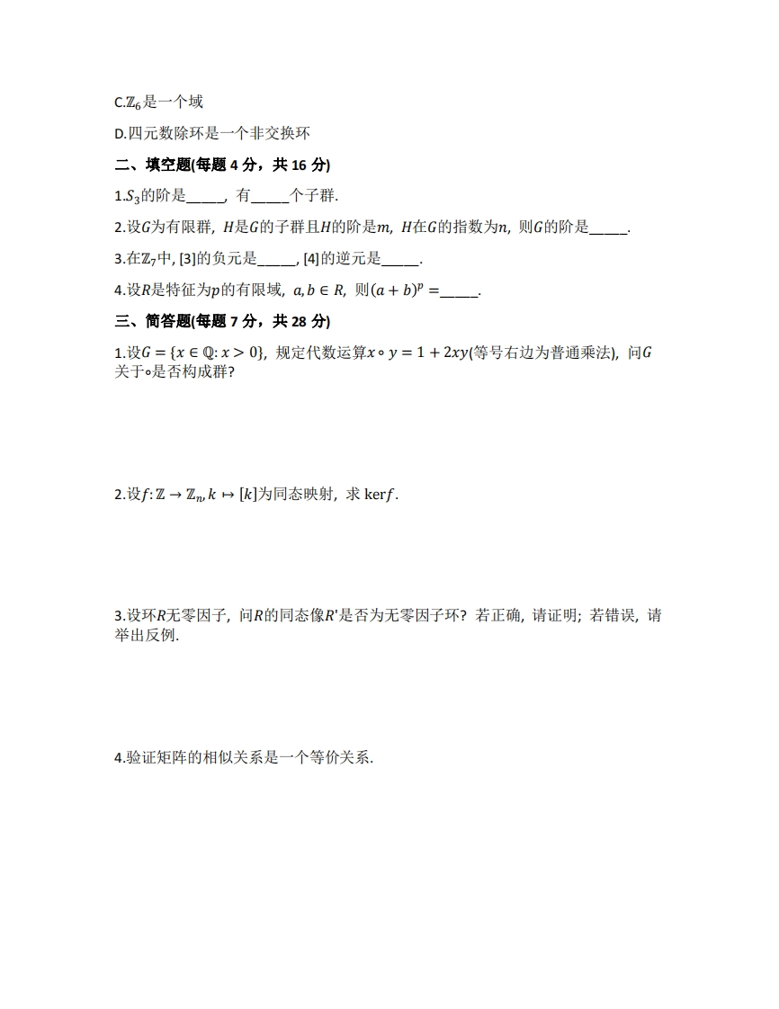 清华大学《抽象代数》2023-2024学年第一学期期末试卷猴哥15天前发布关注私信1.05MB3页0268清华大学《抽象代数》2023-2024学年第一学期期末试卷此内容为免费资源,请登录后查看¥0 登录查看免费资源 第1页 / 共3页 第2页 / 共3页 第3页 / 共3页 已完成全部阅读,共3页 © 版权声明文章版权归作者所有,未经允许请勿转载。THE END《清华大学》期中期末历年真题期末试卷 喜欢就支持一下吧点赞8赞赏 分享QQ空间微博QQ好友海报分享复制链接收藏