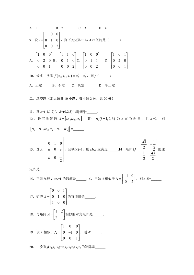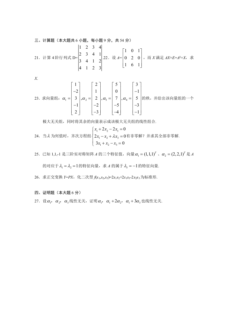 信阳师范学院《线性代数》试卷-2020-2021第一学期期末试卷B猴哥13天前发布关注私信101.56KB3页04511信阳师范学院《线性代数》试卷-2020-2021第一学期期末试卷B此内容为免费资源,请登录后查看¥0 登录查看免费资源 第1页 / 共3页 第2页 / 共3页 第3页 / 共3页 已完成全部阅读,共3页 © 版权声明文章版权归作者所有,未经允许请勿转载。THE END《信阳师范学院》期中期末历年真题期末试卷 喜欢就支持一下吧点赞11赞赏 分享QQ空间微博QQ好友海报分享复制链接收藏