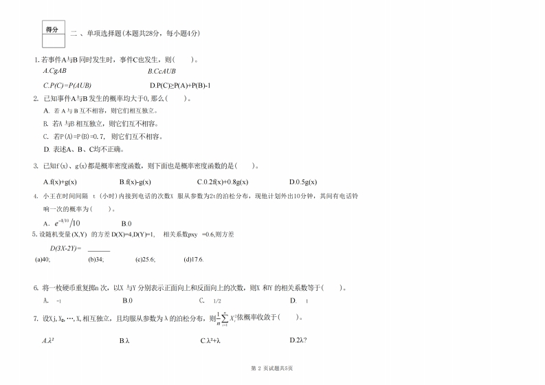 兰州理工大学《概率论与数理统计》2023-2024学年第一学期期末试卷猴哥12天前发布关注私信0.86MB6页0287兰州理工大学《概率论与数理统计》2023-2024学年第一学期期末试卷此内容为免费资源,请登录后查看¥0 登录查看免费资源 第1页 / 共6页 第2页 / 共6页 第3页 / 共6页 该文档为免费文档,您可直接下载完整版进行阅读 © 版权声明文章版权归作者所有,未经允许请勿转载。THE END《兰州理工大学》期中期末历年真题期末试卷 喜欢就支持一下吧点赞7赞赏 分享QQ空间微博QQ好友海报分享复制链接收藏