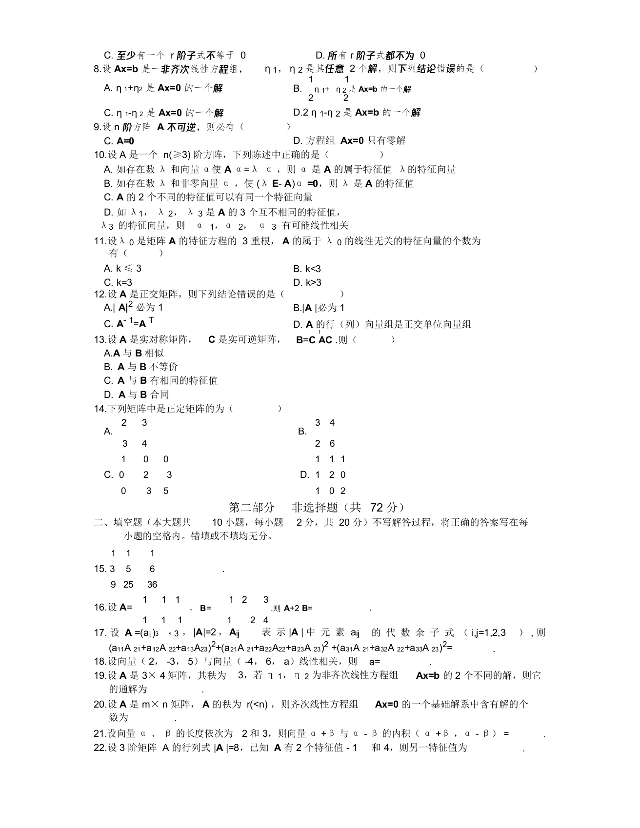信阳师范学院《线性代数》试卷-2020-2021第一学期期末试卷C猴哥12天前发布关注私信64.78KB7页0498信阳师范学院《线性代数》试卷-2020-2021第一学期期末试卷C此内容为免费资源,请登录后查看¥0 登录查看免费资源 第1页 / 共7页 第2页 / 共7页 第3页 / 共7页 该文档为免费文档,您可直接下载完整版进行阅读 © 版权声明文章版权归作者所有,未经允许请勿转载。THE END《信阳师范学院》期中期末历年真题期末试卷 喜欢就支持一下吧点赞8赞赏 分享QQ空间微博QQ好友海报分享复制链接收藏