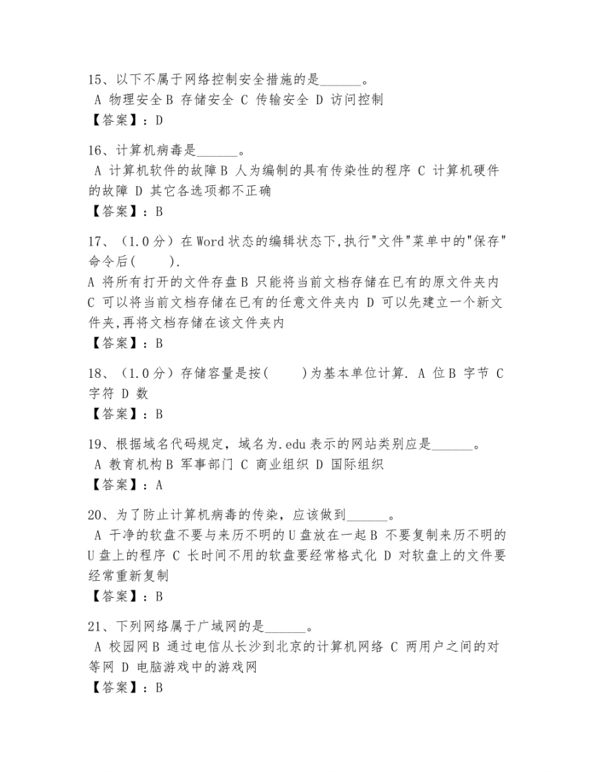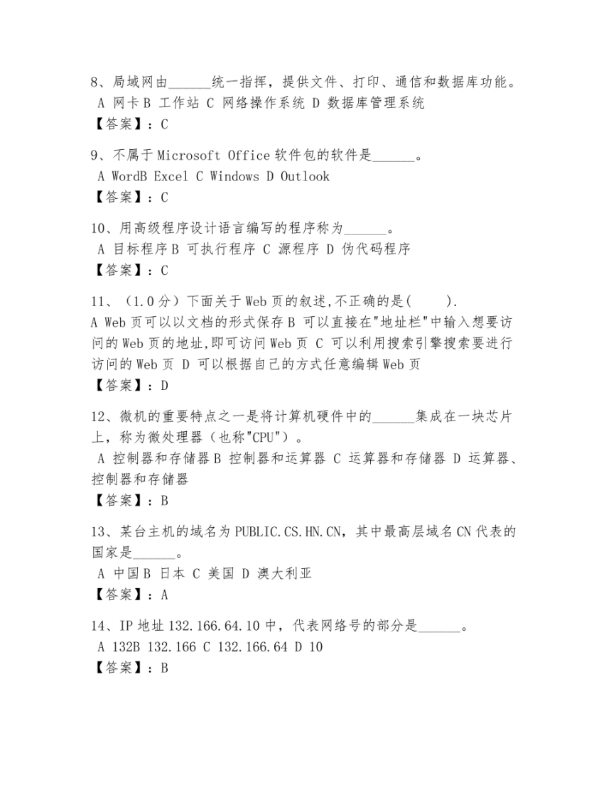 2024年大学计算机基础考试题库附答案【预热题】猴哥13天前发布关注私信5.84MB28页036102024年大学计算机基础考试题库附答案【预热题】此内容为免费资源,请登录后查看¥0 登录查看免费资源 第1页 / 共28页 第2页 / 共28页 第3页 / 共28页 该文档为免费文档,您可直接下载完整版进行阅读 © 版权声明文章版权归作者所有,未经允许请勿转载。THE END期末试卷 喜欢就支持一下吧点赞10赞赏 分享QQ空间微博QQ好友海报分享复制链接收藏