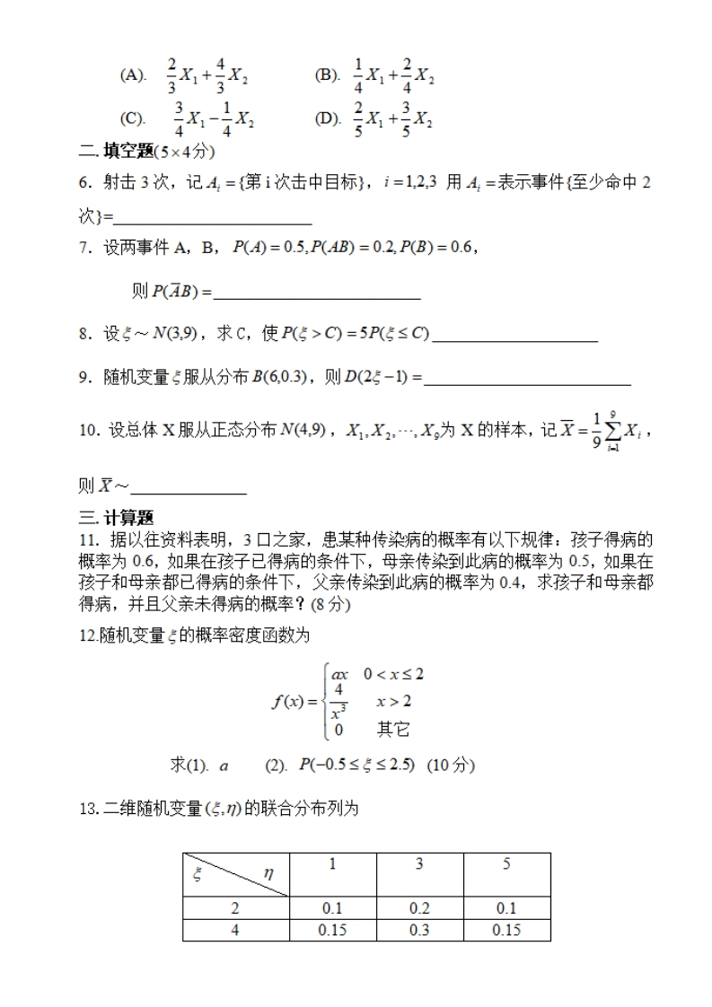 华北理工大学《概率论与数理统计》2020-2021学年第一学期期末试卷猴哥13天前发布关注私信74.88KB3页03514华北理工大学《概率论与数理统计》2020-2021学年第一学期期末试卷此内容为免费资源,请登录后查看¥0 登录查看免费资源 第1页 / 共3页 第2页 / 共3页 第3页 / 共3页 已完成全部阅读,共3页 © 版权声明文章版权归作者所有,未经允许请勿转载。THE END《华北理工大学》期中期末历年真题期末试卷 喜欢就支持一下吧点赞14赞赏 分享QQ空间微博QQ好友海报分享复制链接收藏