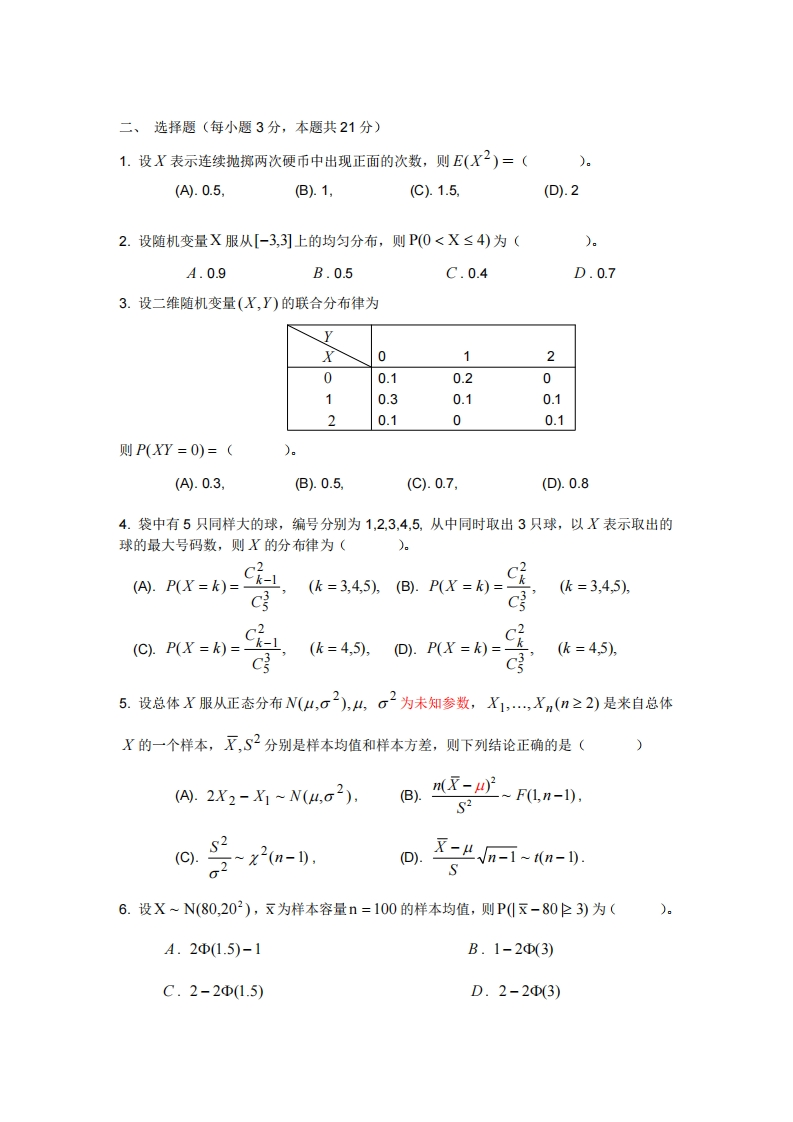 华南农业大学《概率论与数理统计》(56课时)2020-2021学年第一学期期末试卷A卷猴哥13天前发布关注私信0.20MB7页0387华南农业大学《概率论与数理统计》(56课时)2020-2021学年第一学期期末试卷A卷此内容为免费资源,请登录后查看¥0 登录查看免费资源 第1页 / 共7页 第2页 / 共7页 第3页 / 共7页 该文档为免费文档,您可直接下载完整版进行阅读 © 版权声明文章版权归作者所有,未经允许请勿转载。THE END《华南农业大学》期中期末历年真题期末试卷 喜欢就支持一下吧点赞7赞赏 分享QQ空间微博QQ好友海报分享复制链接收藏