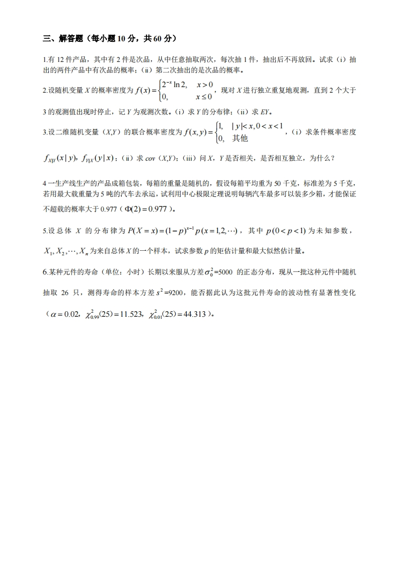 华南农业大学《概率论与数理统计》2023-2024学年第一学期期末试卷猴哥13天前发布关注私信0.43MB2页0437华南农业大学《概率论与数理统计》2023-2024学年第一学期期末试卷此内容为免费资源,请登录后查看¥0 登录查看免费资源 第1页 / 共2页 第2页 / 共2页 已完成全部阅读,共2页 © 版权声明文章版权归作者所有,未经允许请勿转载。THE END《华南农业大学》期中期末历年真题期末试卷 喜欢就支持一下吧点赞7赞赏 分享QQ空间微博QQ好友海报分享复制链接收藏