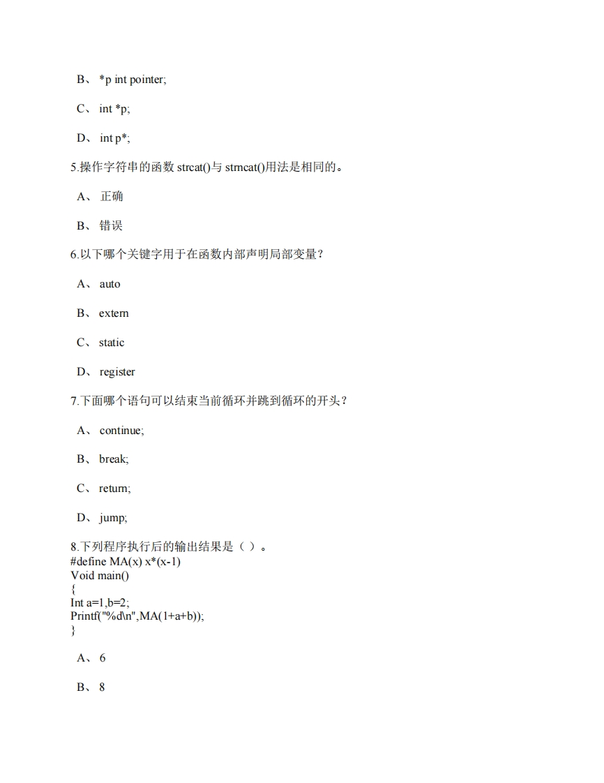 南通大学《C语言程序设计》2023-2024年第一学期期末试题猴哥13天前发布关注私信0.18MB20页03310南通大学《C语言程序设计》2023-2024年第一学期期末试题此内容为免费资源,请登录后查看¥0 登录查看免费资源 第1页 / 共20页 第2页 / 共20页 第3页 / 共20页 该文档为免费文档,您可直接下载完整版进行阅读 © 版权声明文章版权归作者所有,未经允许请勿转载。THE END《南通大学》期中期末历年真题期末试卷 喜欢就支持一下吧点赞10赞赏 分享QQ空间微博QQ好友海报分享复制链接收藏