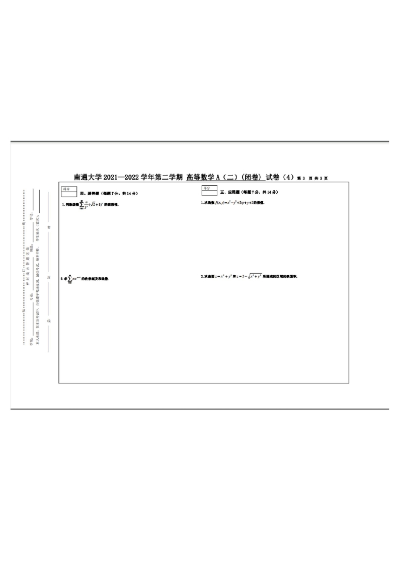 南通大学《高等数学》2021-2022学年第二学期期末试卷猴哥13天前发布关注私信0.21MB3页03613南通大学《高等数学》2021-2022学年第二学期期末试卷此内容为免费资源,请登录后查看¥0 登录查看免费资源 第1页 / 共3页 第2页 / 共3页 第3页 / 共3页 已完成全部阅读,共3页 © 版权声明文章版权归作者所有,未经允许请勿转载。THE END《南通大学》期中期末历年真题期末试卷 喜欢就支持一下吧点赞13赞赏 分享QQ空间微博QQ好友海报分享复制链接收藏
