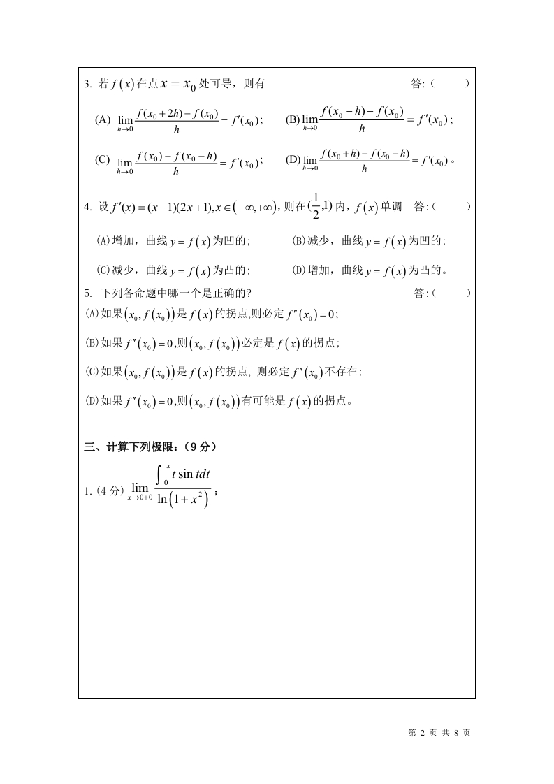 南通大学杏林学院《高等数学》2020-2021第二学期期末考试试卷猴哥13天前发布关注私信0.41MB8页02812南通大学杏林学院《高等数学》2020-2021第二学期期末考试试卷此内容为免费资源,请登录后查看¥0 登录查看免费资源 第1页 / 共8页 第2页 / 共8页 第3页 / 共8页 该文档为免费文档,您可直接下载完整版进行阅读 © 版权声明文章版权归作者所有,未经允许请勿转载。THE END《南通大学》期中期末历年真题《南通大学杏林学院》期中期末历年真题期末试卷 喜欢就支持一下吧点赞12赞赏 分享QQ空间微博QQ好友海报分享复制链接收藏