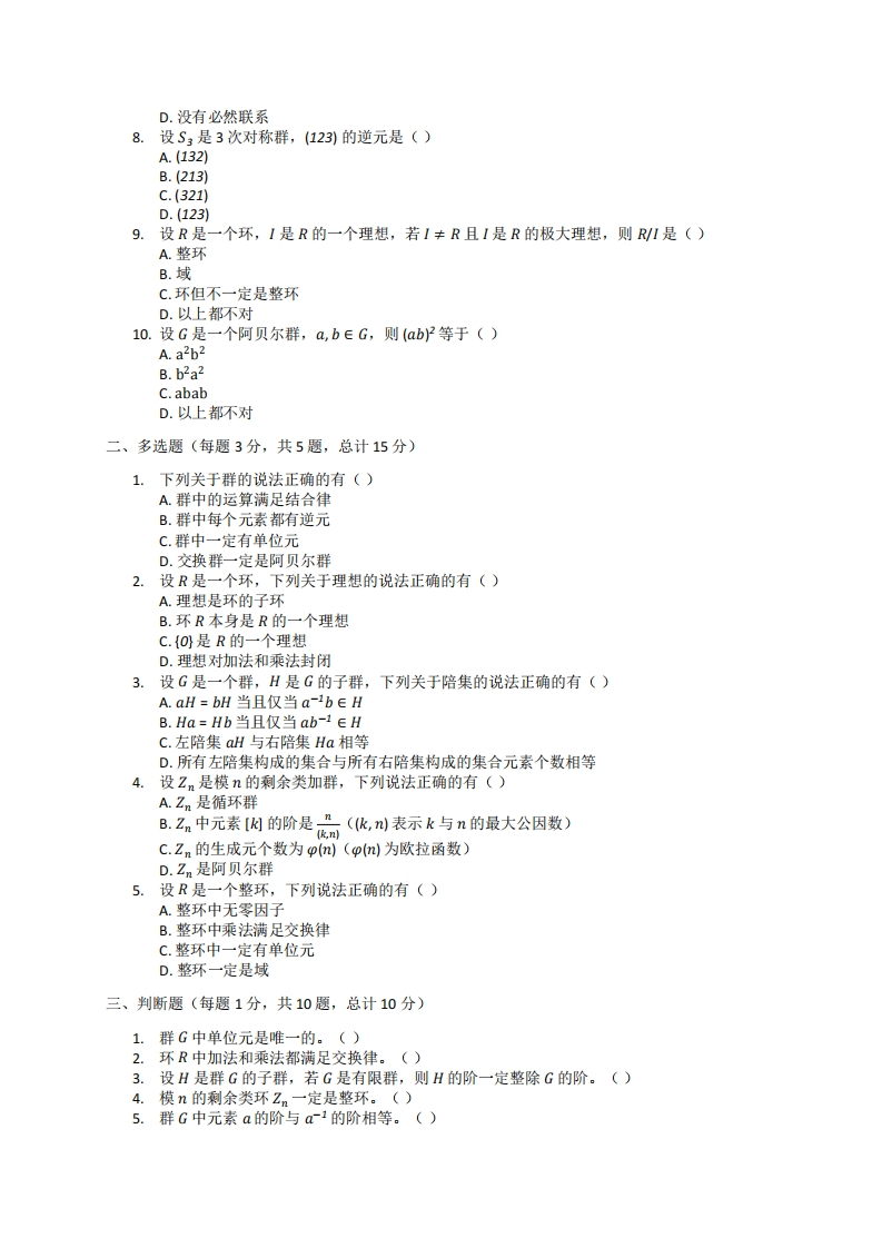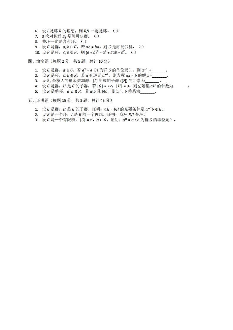 吉首大学《近世代数》2022-2023年第一学期期末试卷猴哥13天前发布关注私信1.13MB3页03413吉首大学《近世代数》2022-2023年第一学期期末试卷此内容为免费资源,请登录后查看¥0 登录查看免费资源 第1页 / 共3页 第2页 / 共3页 第3页 / 共3页 已完成全部阅读,共3页 © 版权声明文章版权归作者所有,未经允许请勿转载。THE END《吉首大学》期中期末历年真题期末试卷 喜欢就支持一下吧点赞13赞赏 分享QQ空间微博QQ好友海报分享复制链接收藏