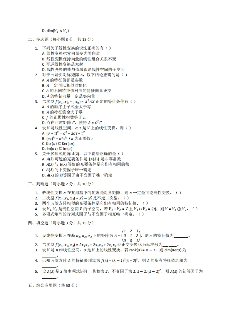 吉首大学《高等代数Ⅱ》2023-2024年第一学期期末试卷猴哥12天前发布关注私信1.14MB3页02113吉首大学《高等代数Ⅱ》2023-2024年第一学期期末试卷此内容为免费资源,请登录后查看¥0 登录查看免费资源 第1页 / 共3页 第2页 / 共3页 第3页 / 共3页 已完成全部阅读,共3页 © 版权声明文章版权归作者所有,未经允许请勿转载。THE END《吉首大学》期中期末历年真题期末试卷 喜欢就支持一下吧点赞13赞赏 分享QQ空间微博QQ好友海报分享复制链接收藏
