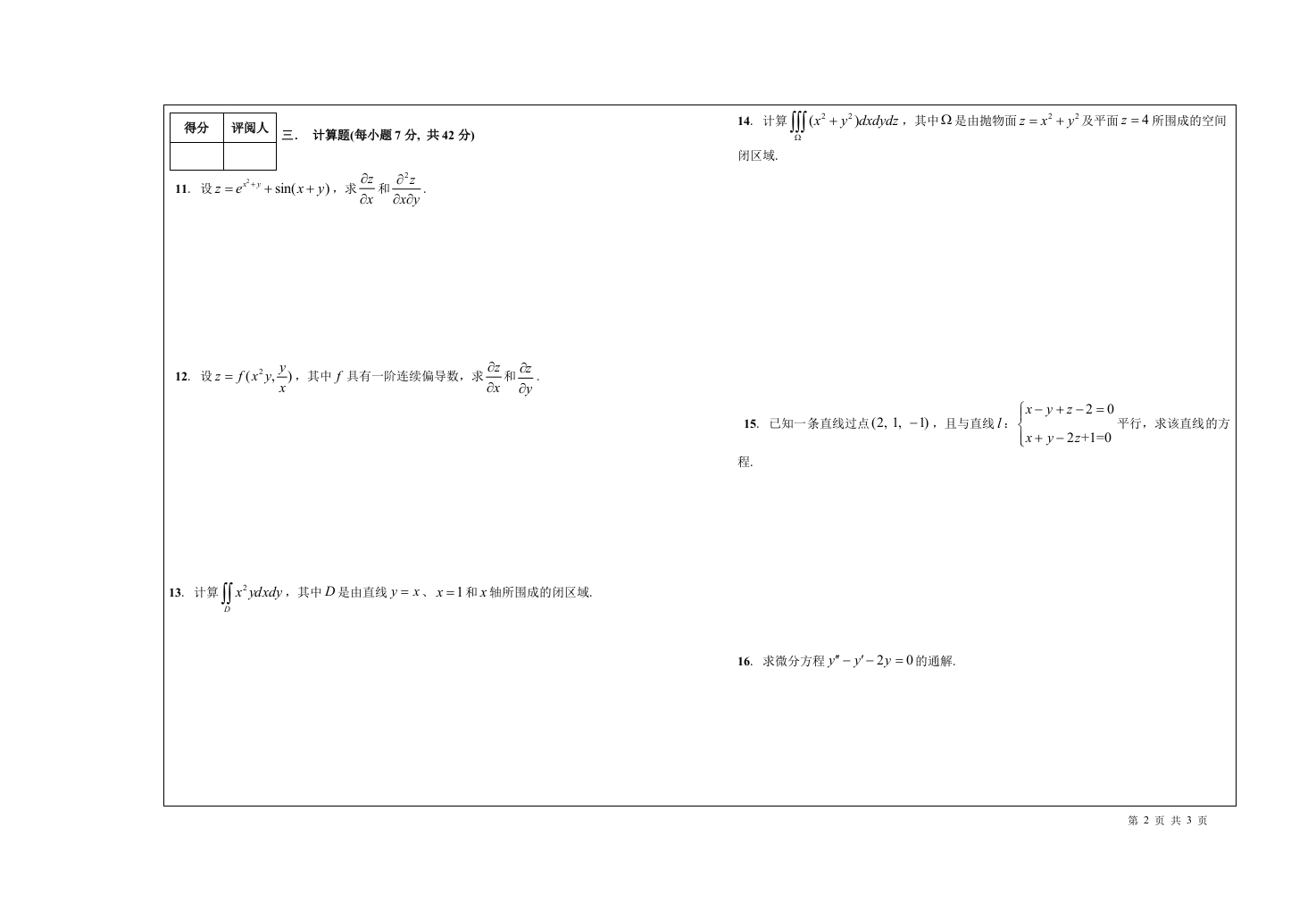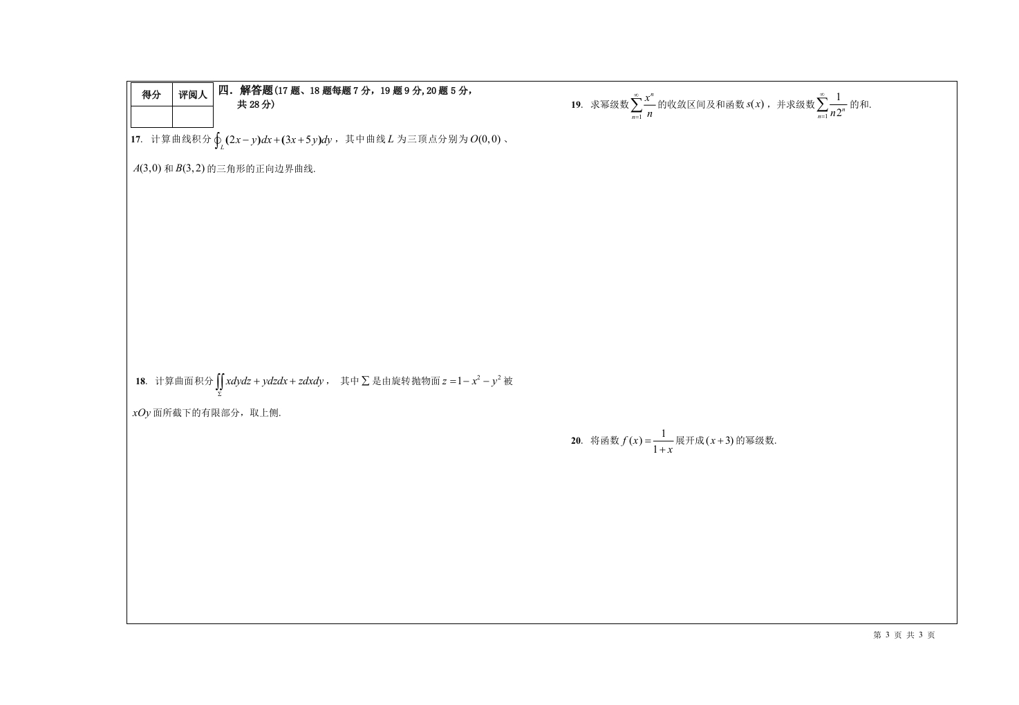 喀什大学《高等数学》2018-2019学年第二学期期末试卷猴哥13天前发布关注私信0.22MB3页04910喀什大学《高等数学》2018-2019学年第二学期期末试卷此内容为免费资源,请登录后查看¥0 登录查看免费资源 第1页 / 共3页 第2页 / 共3页 第3页 / 共3页 已完成全部阅读,共3页 © 版权声明文章版权归作者所有,未经允许请勿转载。THE END《喀什大学》期中期末历年真题期末试卷 喜欢就支持一下吧点赞10赞赏 分享QQ空间微博QQ好友海报分享复制链接收藏