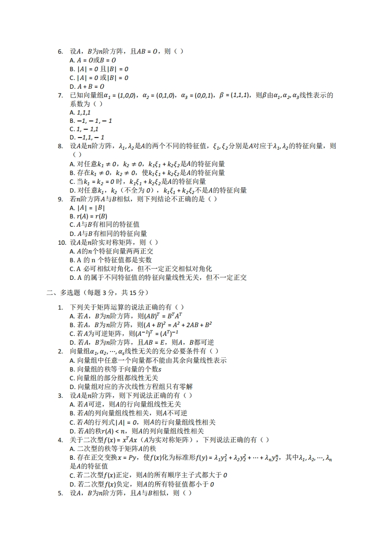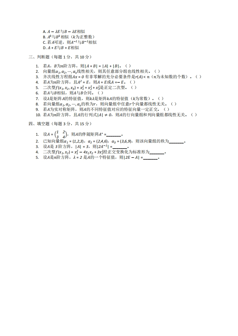 吉首大学《高等代数I》2023-2024年第一学期期末试卷猴哥13天前发布关注私信1.13MB3页0265吉首大学《高等代数I》2023-2024年第一学期期末试卷此内容为免费资源,请登录后查看¥0 登录查看免费资源 第1页 / 共3页 第2页 / 共3页 第3页 / 共3页 已完成全部阅读,共3页 © 版权声明文章版权归作者所有,未经允许请勿转载。THE END《吉首大学》期中期末历年真题期末试卷 喜欢就支持一下吧点赞5赞赏 分享QQ空间微博QQ好友海报分享复制链接收藏