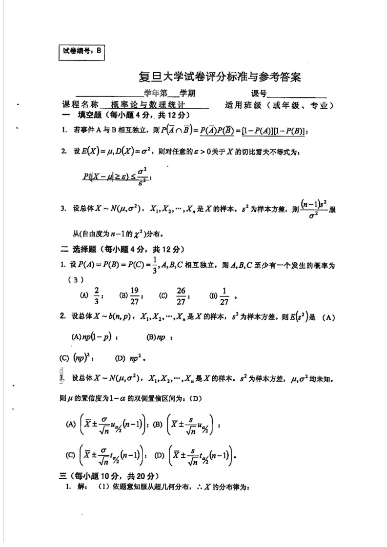 复旦大学《概率与数理统计》试卷-2017-2018学年第一学期期末考试试卷A卷猴哥13天前发布关注私信0.96MB6页0476复旦大学《概率与数理统计》试卷-2017-2018学年第一学期期末考试试卷A卷此内容为免费资源,请登录后查看¥0 登录查看免费资源 第1页 / 共6页 第2页 / 共6页 第3页 / 共6页 该文档为免费文档,您可直接下载完整版进行阅读 © 版权声明文章版权归作者所有,未经允许请勿转载。THE END《复旦大学》期中期末历年真题期末试卷 喜欢就支持一下吧点赞6赞赏 分享QQ空间微博QQ好友海报分享复制链接收藏