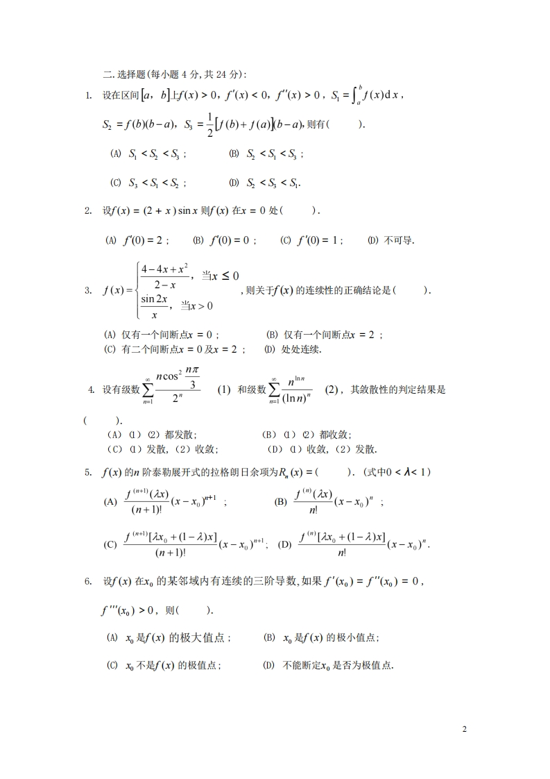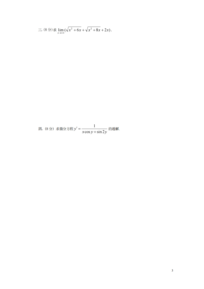 天津师范大学津沽学院《高等数学》2023-2024学年第一学期期末试卷猴哥12天前发布关注私信0.28MB5页04814天津师范大学津沽学院《高等数学》2023-2024学年第一学期期末试卷此内容为免费资源,请登录后查看¥0 登录查看免费资源 第1页 / 共5页 第2页 / 共5页 第3页 / 共5页 该文档为免费文档,您可直接下载完整版进行阅读 © 版权声明文章版权归作者所有,未经允许请勿转载。THE END《天津师范大学》期中期末历年真题《天津师范大学津沽学院》期中期末历年真题期末试卷 喜欢就支持一下吧点赞14赞赏 分享QQ空间微博QQ好友海报分享复制链接收藏