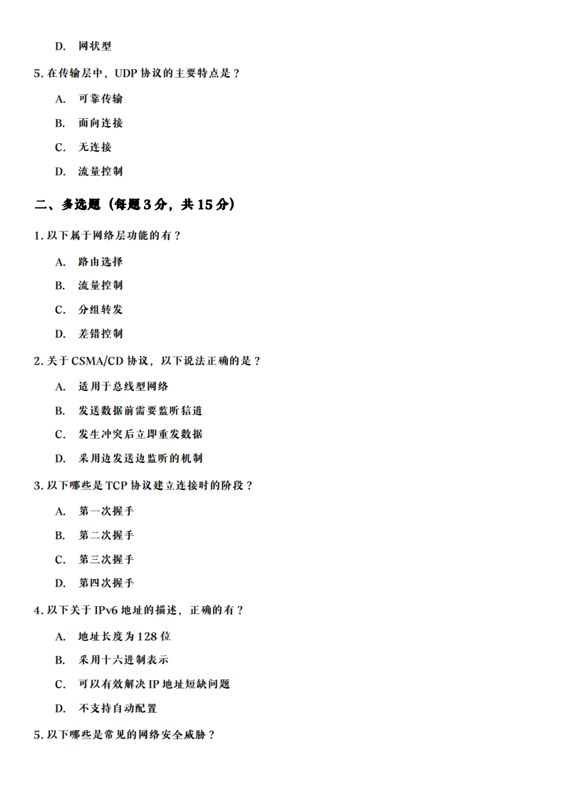 山东师范大学《计算机网络原理》2022-2023学年第一学期期末试卷猴哥13天前发布关注私信0.11MB4页0398山东师范大学《计算机网络原理》2022-2023学年第一学期期末试卷此内容为免费资源,请登录后查看¥0 登录查看免费资源 第1页 / 共4页 第2页 / 共4页 第3页 / 共4页 该文档为免费文档,您可直接下载完整版进行阅读 © 版权声明文章版权归作者所有,未经允许请勿转载。THE END《山东师范大学》期中期末历年真题期末试卷 喜欢就支持一下吧点赞8赞赏 分享QQ空间微博QQ好友海报分享复制链接收藏
