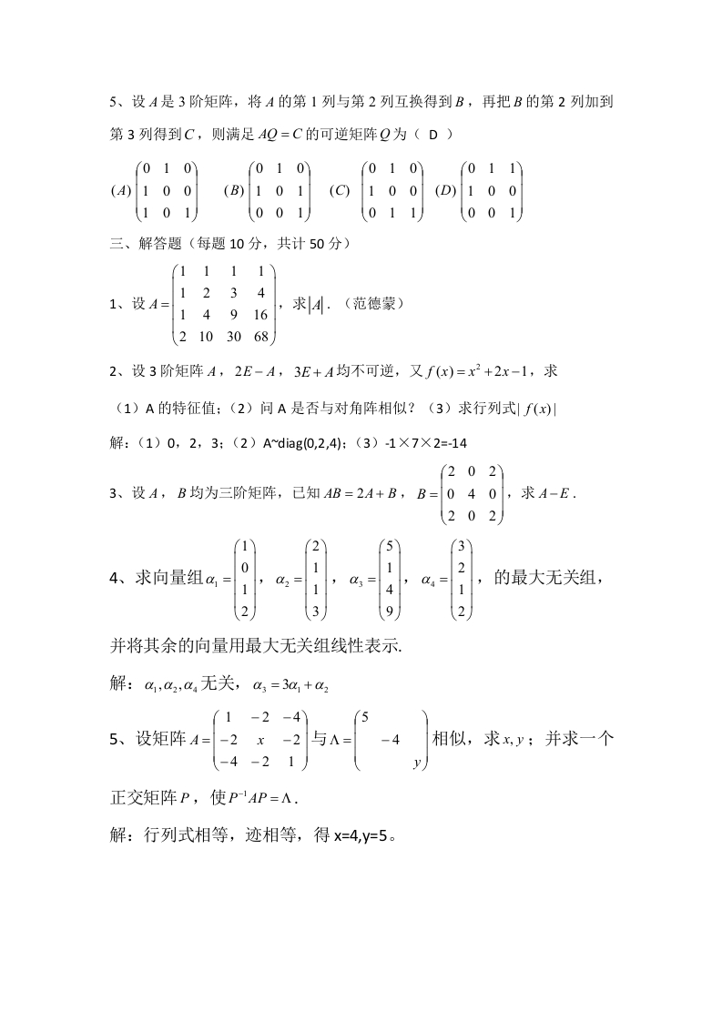 山西大学《线性代数》2017-2018学年第二学期期末试卷猴哥12天前发布关注私信0.12MB2页03614山西大学《线性代数》2017-2018学年第二学期期末试卷此内容为免费资源,请登录后查看¥0 登录查看免费资源 第1页 / 共2页 第2页 / 共2页 已完成全部阅读,共2页 © 版权声明文章版权归作者所有,未经允许请勿转载。THE END《山西大学》期中期末历年真题期末试卷 喜欢就支持一下吧点赞14赞赏 分享QQ空间微博QQ好友海报分享复制链接收藏