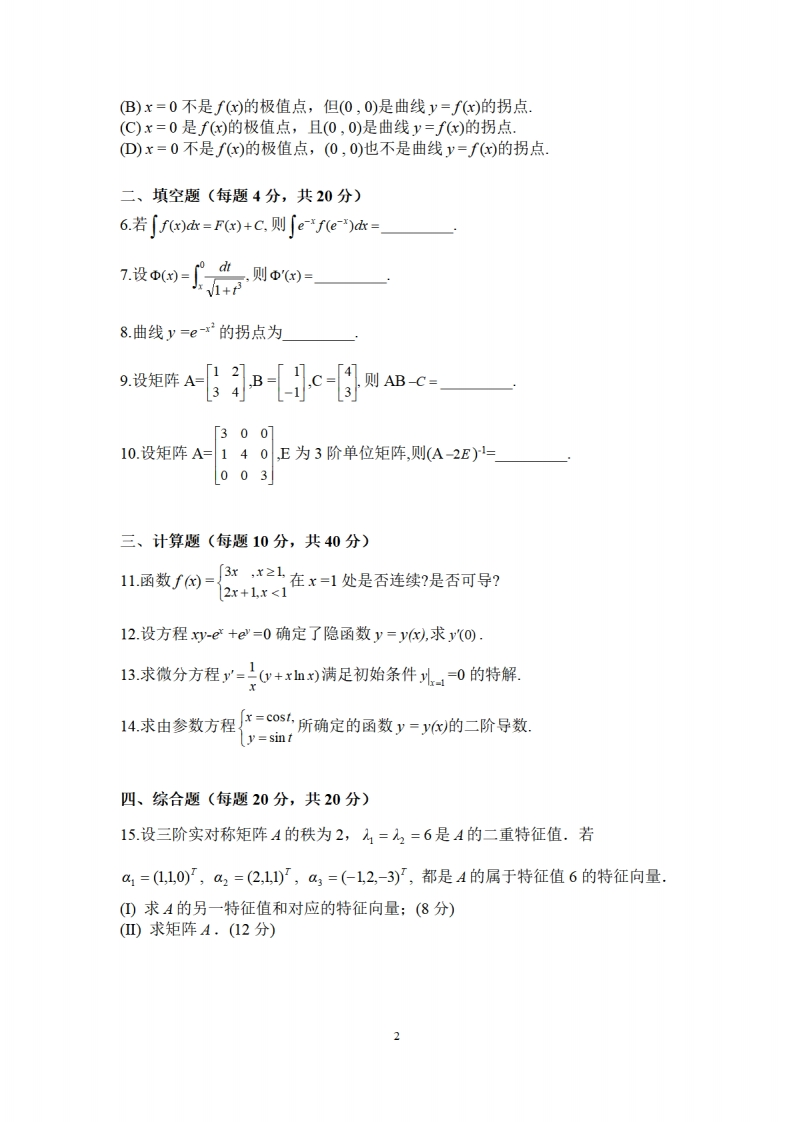 安徽大学《高等数学》2023-2024学年第一学期期末试卷猴哥13天前发布关注私信0.13MB2页02312安徽大学《高等数学》2023-2024学年第一学期期末试卷此内容为免费资源,请登录后查看¥0 登录查看免费资源 第1页 / 共2页 第2页 / 共2页 已完成全部阅读,共2页 © 版权声明文章版权归作者所有,未经允许请勿转载。THE END《安徽大学》期中期末历年真题期末试卷 喜欢就支持一下吧点赞12赞赏 分享QQ空间微博QQ好友海报分享复制链接收藏