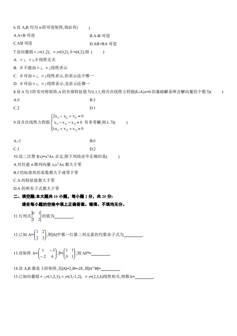 山西医科大学《线性代数》2023-2024学年第一学期期末考试试卷猴哥12天前发布关注私信0.43MB3页02212山西医科大学《线性代数》2023-2024学年第一学期期末考试试卷此内容为免费资源,请登录后查看¥0 登录查看免费资源 第1页 / 共3页 第2页 / 共3页 第3页 / 共3页 已完成全部阅读,共3页 © 版权声明文章版权归作者所有,未经允许请勿转载。THE END《山西医科大学》期中期末历年真题期末试卷 喜欢就支持一下吧点赞12赞赏 分享QQ空间微博QQ好友海报分享复制链接收藏