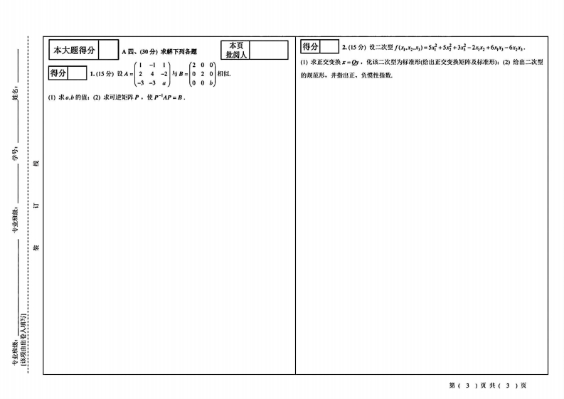 山西财经大学《线性代数》2023-2024学年第一学期期末试卷猴哥12天前发布关注私信0.54MB3页04015山西财经大学《线性代数》2023-2024学年第一学期期末试卷此内容为免费资源,请登录后查看¥0 登录查看免费资源 第1页 / 共3页 第2页 / 共3页 第3页 / 共3页 已完成全部阅读,共3页 © 版权声明文章版权归作者所有,未经允许请勿转载。THE END《山西财经大学》期中期末历年真题期末试卷 喜欢就支持一下吧点赞15赞赏 分享QQ空间微博QQ好友海报分享复制链接收藏