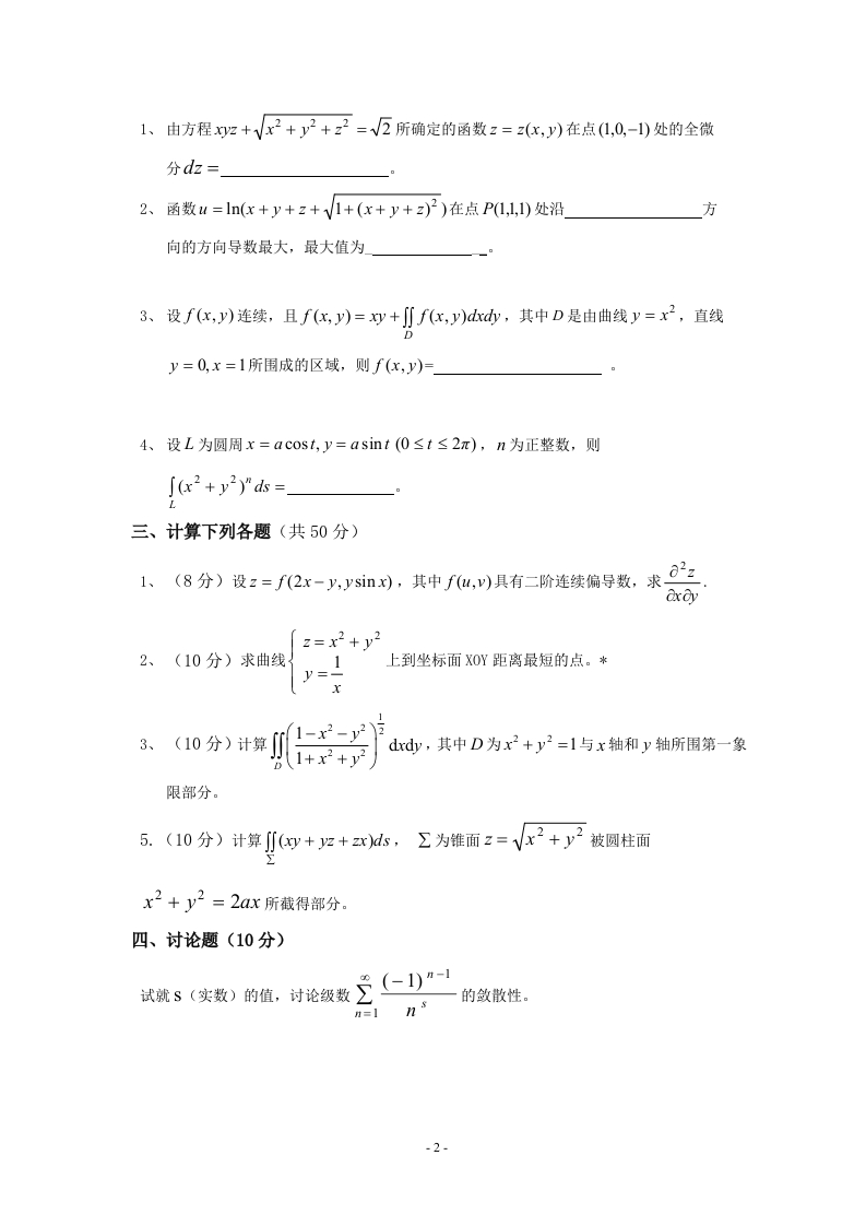 成都大学《高等数学》2020-2021学年第一学期期末试卷猴哥13天前发布关注私信0.13MB2页03912成都大学《高等数学》2020-2021学年第一学期期末试卷此内容为免费资源,请登录后查看¥0 登录查看免费资源 第1页 / 共2页 第2页 / 共2页 已完成全部阅读,共2页 © 版权声明文章版权归作者所有,未经允许请勿转载。THE END《成都大学》期中期末历年真题期末试卷 喜欢就支持一下吧点赞12赞赏 分享QQ空间微博QQ好友海报分享复制链接收藏
