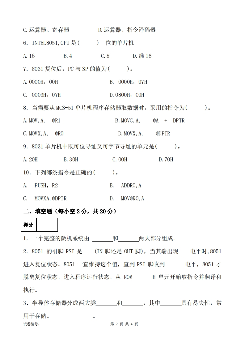 成都工业学院《单片机原理及应用》2021-2022学年第一学期期末试卷猴哥13天前发布关注私信0.21MB4页0208成都工业学院《单片机原理及应用》2021-2022学年第一学期期末试卷此内容为免费资源,请登录后查看¥0 登录查看免费资源 第1页 / 共4页 第2页 / 共4页 第3页 / 共4页 该文档为免费文档,您可直接下载完整版进行阅读 © 版权声明文章版权归作者所有,未经允许请勿转载。THE END《成都工业学院》期中期末历年真题期末试卷 喜欢就支持一下吧点赞8赞赏 分享QQ空间微博QQ好友海报分享复制链接收藏