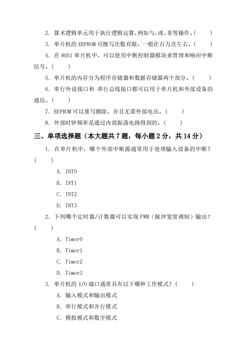 成都理工大学《单片机原理及应用》2021-2022学年第一学期期末试卷猴哥12天前发布关注私信0.11MB4页02012成都理工大学《单片机原理及应用》2021-2022学年第一学期期末试卷此内容为免费资源,请登录后查看¥0 登录查看免费资源 第1页 / 共4页 第2页 / 共4页 第3页 / 共4页 该文档为免费文档,您可直接下载完整版进行阅读 © 版权声明文章版权归作者所有,未经允许请勿转载。THE END《成都理工大学》期中期末历年真题期末试卷 喜欢就支持一下吧点赞12赞赏 分享QQ空间微博QQ好友海报分享复制链接收藏