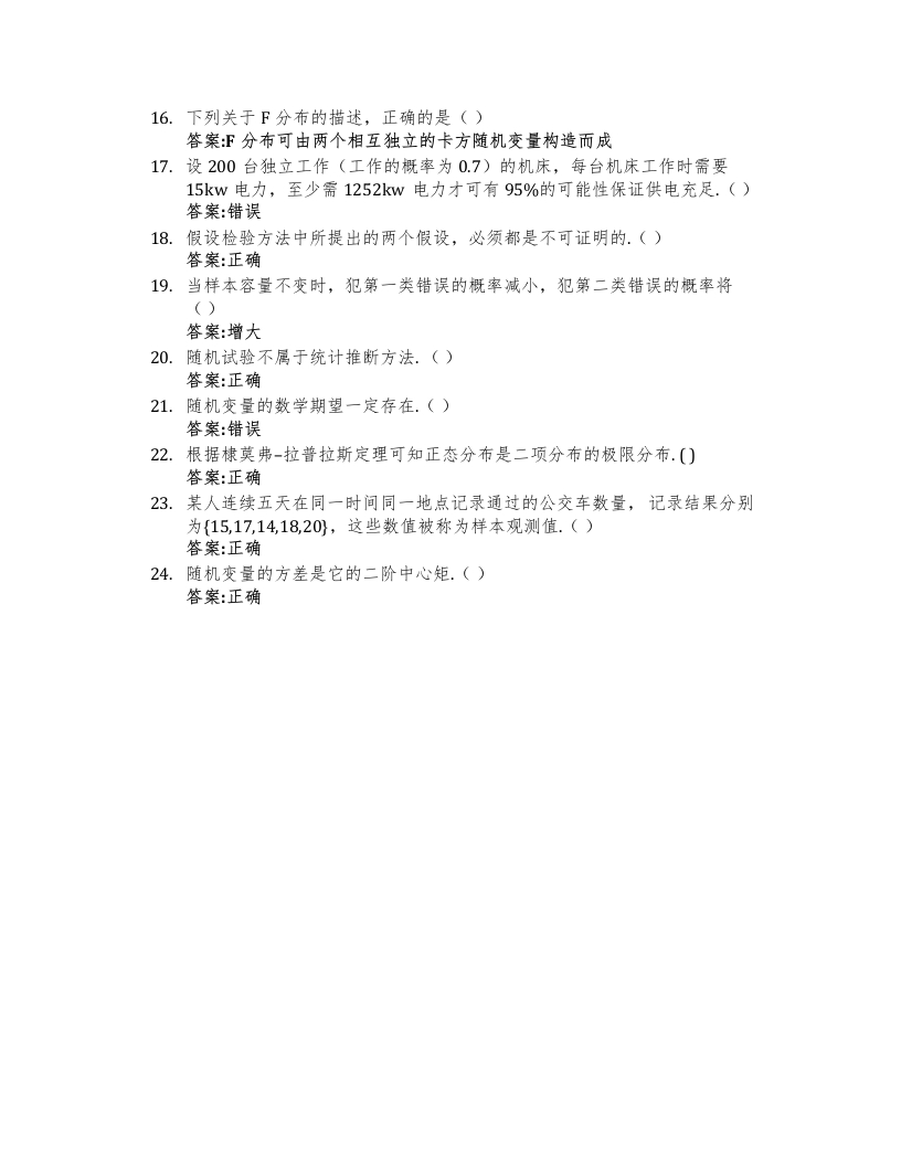 概率论与数理统计_西安科技大学中国大学mooc章节课后测试答案期末考试题库2024年猴哥12天前发布关注私信11.37KB2页03912概率论与数理统计_西安科技大学中国大学mooc章节课后测试答案期末考试题库2024年此内容为免费资源,请登录后查看¥0 登录查看免费资源 第1页 / 共2页 第2页 / 共2页 已完成全部阅读,共2页 © 版权声明文章版权归作者所有,未经允许请勿转载。THE END《西安科技大学》期中期末历年真题期末试卷 喜欢就支持一下吧点赞12赞赏 分享QQ空间微博QQ好友海报分享复制链接收藏