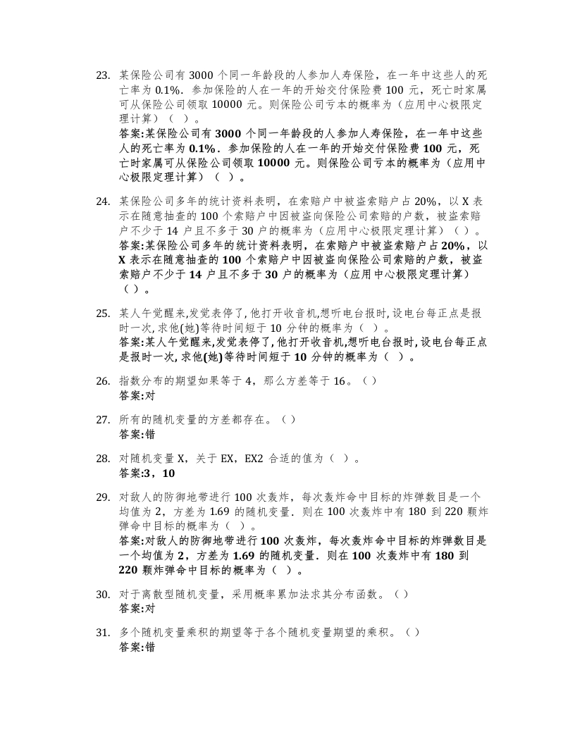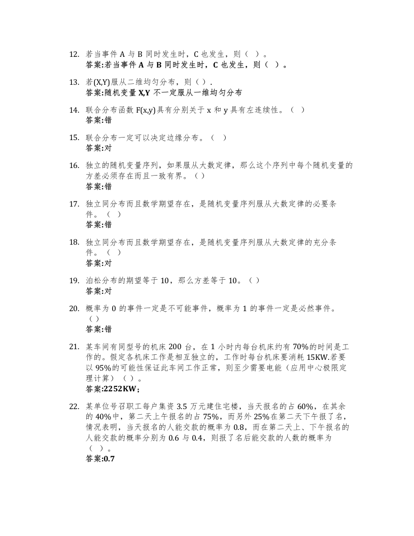概率论(华南农业大学)知到智慧树期末考试答案题库2025年华南农业大学猴哥13天前发布关注私信0.35MB17页04711概率论(华南农业大学)知到智慧树期末考试答案题库2025年华南农业大学此内容为免费资源,请登录后查看¥0 登录查看免费资源 第1页 / 共17页 第2页 / 共17页 第3页 / 共17页 该文档为免费文档,您可直接下载完整版进行阅读 © 版权声明文章版权归作者所有,未经允许请勿转载。THE END《华南农业大学》期中期末历年真题期末试卷 喜欢就支持一下吧点赞11赞赏 分享QQ空间微博QQ好友海报分享复制链接收藏