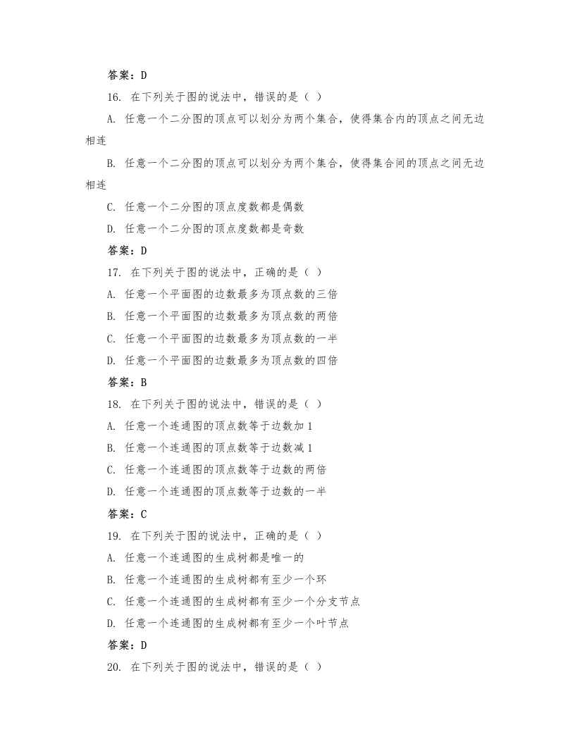 数学图论试题及答案猴哥12天前发布关注私信15.21KB6页0237数学图论试题及答案此内容为免费资源,请登录后查看¥0 登录查看免费资源 第1页 / 共6页 第2页 / 共6页 第3页 / 共6页 该文档为免费文档,您可直接下载完整版进行阅读 © 版权声明文章版权归作者所有,未经允许请勿转载。THE END期末试卷 喜欢就支持一下吧点赞7赞赏 分享QQ空间微博QQ好友海报分享复制链接收藏