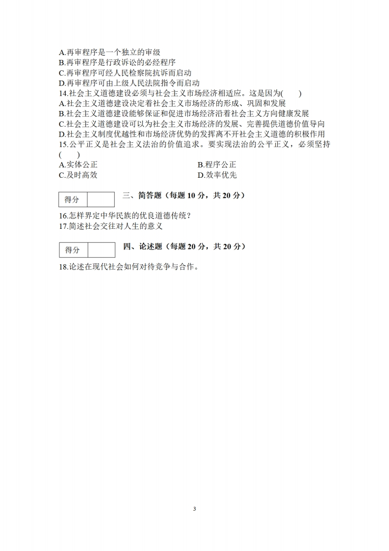 江西财经大学《思想道德与法治》2023-2024学年第一学期期末试卷猴哥12天前发布关注私信0.28MB3页0247江西财经大学《思想道德与法治》2023-2024学年第一学期期末试卷此内容为免费资源,请登录后查看¥0 登录查看免费资源 第1页 / 共3页 第2页 / 共3页 第3页 / 共3页 已完成全部阅读,共3页 © 版权声明文章版权归作者所有,未经允许请勿转载。THE END《江西财经大学》期中期末历年真题期末试卷 喜欢就支持一下吧点赞7赞赏 分享QQ空间微博QQ好友海报分享复制链接收藏