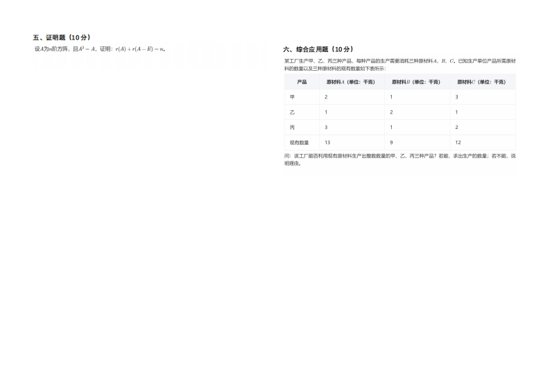江西农业大学《线性代数B》2023-2024学年第一学期期末试卷猴哥12天前发布关注私信0.44MB2页02515江西农业大学《线性代数B》2023-2024学年第一学期期末试卷此内容为免费资源,请登录后查看¥0 登录查看免费资源 第1页 / 共2页 第2页 / 共2页 已完成全部阅读,共2页 © 版权声明文章版权归作者所有,未经允许请勿转载。THE END《江西农业大学》期中期末历年真题期末试卷 喜欢就支持一下吧点赞15赞赏 分享QQ空间微博QQ好友海报分享复制链接收藏