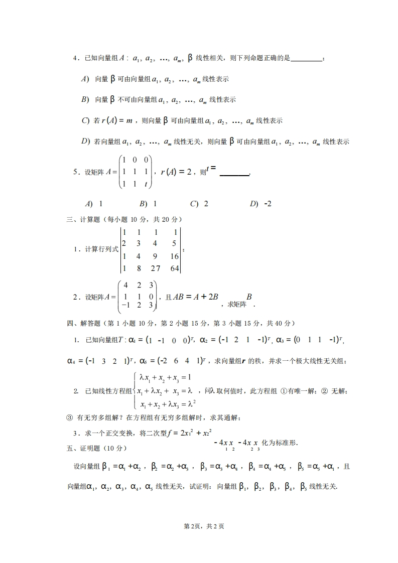 河南农业大学《线性代数》2021-2022学年第二学期期末试卷猴哥13天前发布关注私信0.25MB2页02213河南农业大学《线性代数》2021-2022学年第二学期期末试卷此内容为免费资源,请登录后查看¥0 登录查看免费资源 第1页 / 共2页 第2页 / 共2页 已完成全部阅读,共2页 © 版权声明文章版权归作者所有,未经允许请勿转载。THE END《河南农业大学》期中期末历年真题期末试卷 喜欢就支持一下吧点赞13赞赏 分享QQ空间微博QQ好友海报分享复制链接收藏