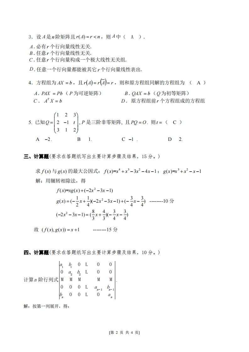 江西财经大学《高等代数》2021-2022学年第一学期期末试卷猴哥13天前发布关注私信0.21MB4页03712江西财经大学《高等代数》2021-2022学年第一学期期末试卷此内容为免费资源,请登录后查看¥0 登录查看免费资源 第1页 / 共4页 第2页 / 共4页 第3页 / 共4页 该文档为免费文档,您可直接下载完整版进行阅读 © 版权声明文章版权归作者所有,未经允许请勿转载。THE END《江西财经大学》期中期末历年真题期末试卷 喜欢就支持一下吧点赞12赞赏 分享QQ空间微博QQ好友海报分享复制链接收藏