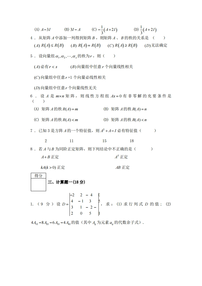 河南农业大学《线性代数》2023-2024学年第一学期期末试卷猴哥13天前发布关注私信0.26MB5页0245河南农业大学《线性代数》2023-2024学年第一学期期末试卷此内容为免费资源,请登录后查看¥0 登录查看免费资源 第1页 / 共5页 第2页 / 共5页 第3页 / 共5页 该文档为免费文档,您可直接下载完整版进行阅读 © 版权声明文章版权归作者所有,未经允许请勿转载。THE END《河南农业大学》期中期末历年真题期末试卷 喜欢就支持一下吧点赞5赞赏 分享QQ空间微博QQ好友海报分享复制链接收藏