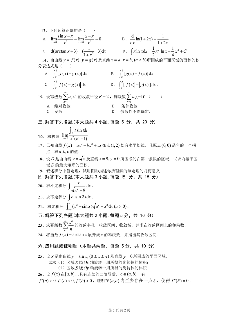 浙大城市学院《高等数学(I)》2018-2019第一学期期末试卷猴哥12天前发布关注私信0.18MB2页02914浙大城市学院《高等数学(I)》2018-2019第一学期期末试卷此内容为免费资源,请登录后查看¥0 登录查看免费资源 第1页 / 共2页 第2页 / 共2页 已完成全部阅读,共2页 © 版权声明文章版权归作者所有,未经允许请勿转载。THE END《浙大城市学院》期中期末历年真题期末试卷 喜欢就支持一下吧点赞14赞赏 分享QQ空间微博QQ好友海报分享复制链接收藏