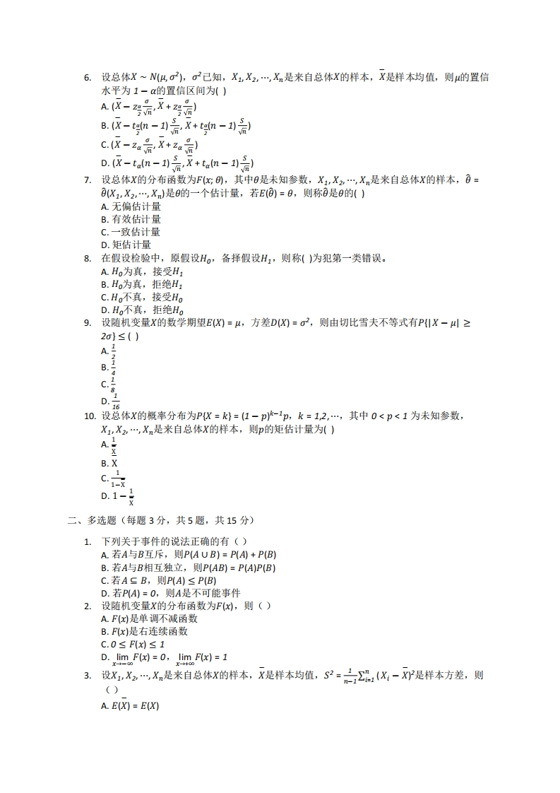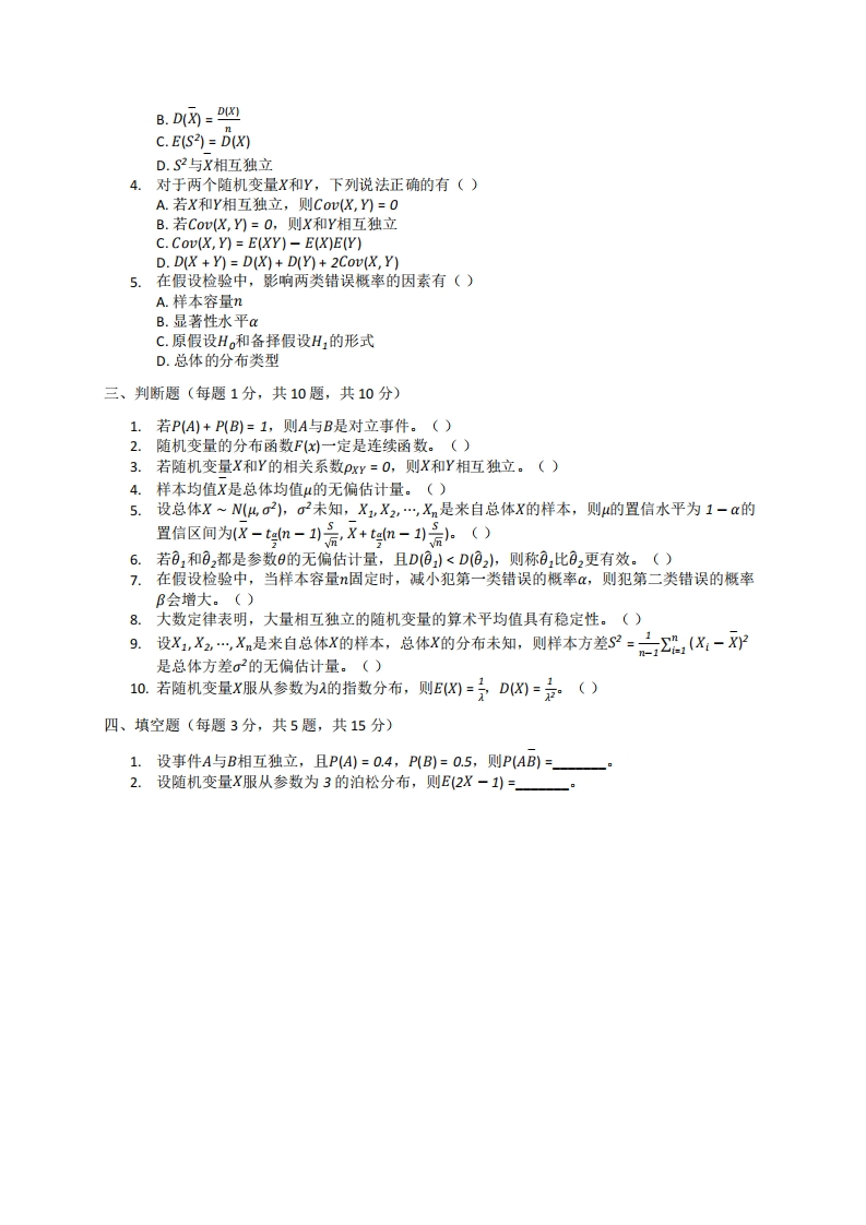 河南科技大学《概率论与数理统计》2023-2024学年第一学期期末试卷猴哥12天前发布关注私信1.17MB3页02314河南科技大学《概率论与数理统计》2023-2024学年第一学期期末试卷此内容为免费资源,请登录后查看¥0 登录查看免费资源 第1页 / 共3页 第2页 / 共3页 第3页 / 共3页 已完成全部阅读,共3页 © 版权声明文章版权归作者所有,未经允许请勿转载。THE END《河南科技大学》期中期末历年真题期末试卷 喜欢就支持一下吧点赞14赞赏 分享QQ空间微博QQ好友海报分享复制链接收藏
